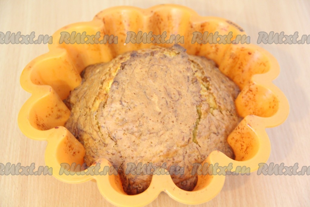 Поставить форму с тестом в разогретую духовку и выпекать тыквенный кекс при температуре 180-200 градусов, примерно, 40 минут. Готовность можно проверить сухой зубочисткой. У меня кекс поднялся вулканчиком и слегка треснул, но на вкус это не повлияло. Готовый кекс достать из формы и остудить на решётке.