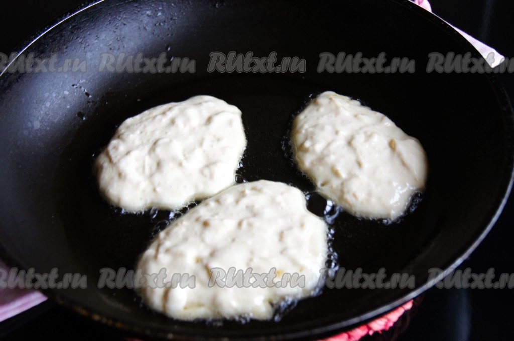 На сковороде разогреть растительное масло, выкладывать по 1 столовой ложке теста в виде круглых оладий.