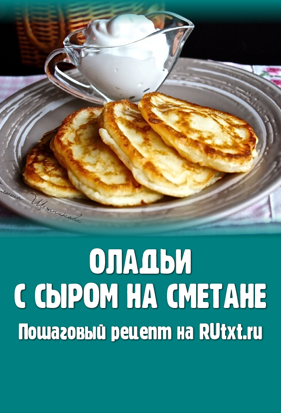 Аппетитные, вкусные оладьи с сыром подать к столу тёплыми, дополнив сметаной или другим несладким соусом на ваш вкус.