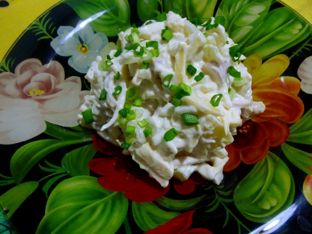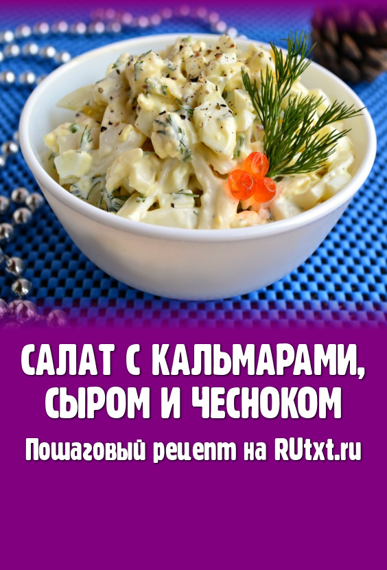 Салат с кальмарами, сыром и чесноком готовится и просто, и быстро. А вот вкус у него потрясающий! Этот нежный, ароматный салат можно подать и к семейному обеду или ужину, и к праздничному столу. Расчёт продуктов дан на небольшую порцию. Уверена, этот салат понравится и вам, и вашим близким!