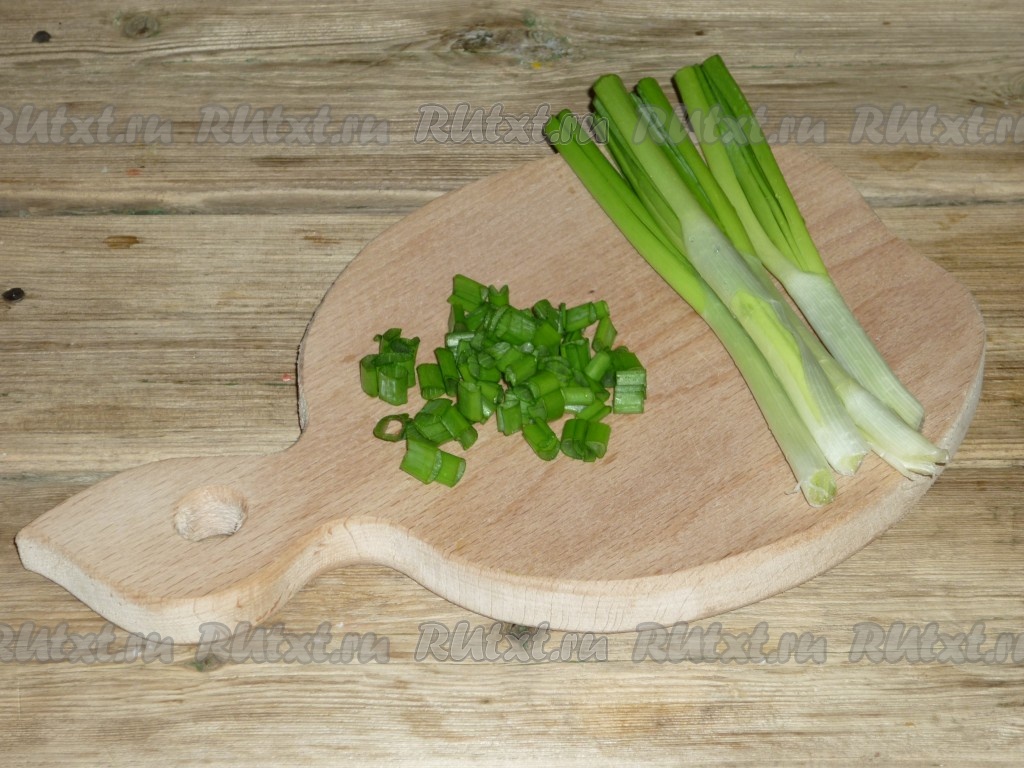 Зелёный лук вымыть, обсушить и мелко нарезать.