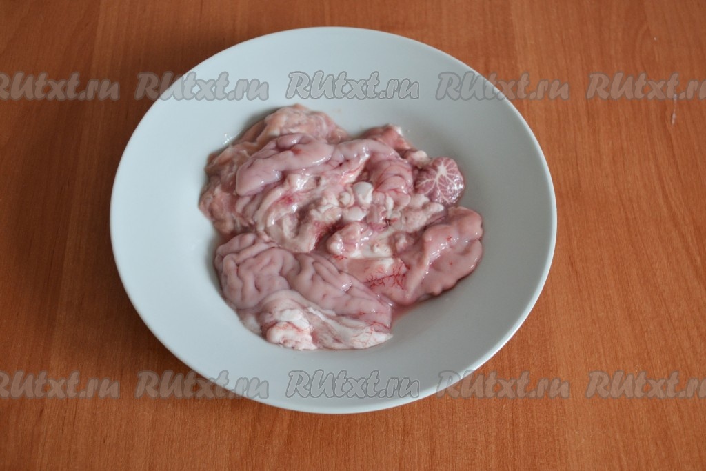 Под прохладной проточной водой промыть свиные мозги,