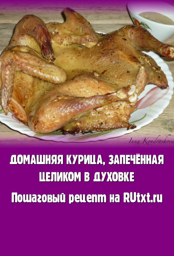 Аппетитная, с хрустящей курочкой, очень вкусная и ароматная домашняя курица, запечённая целиком в духовке, украсит стол и в будний, и в праздничный день.