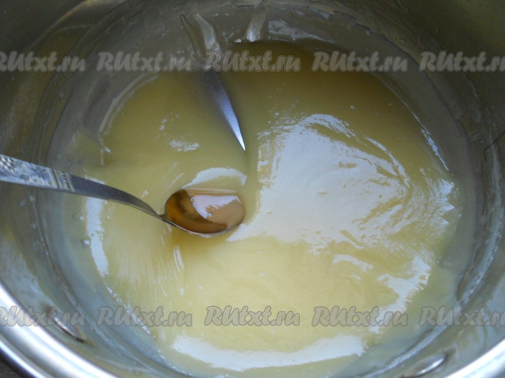 Варить смесь при постоянном помешивании на среднем огне до загустения. Затем снять с огня, остудить. После остывания молочно-желтковая смесь загустеет, по консистенции станет, как густая глазурь.