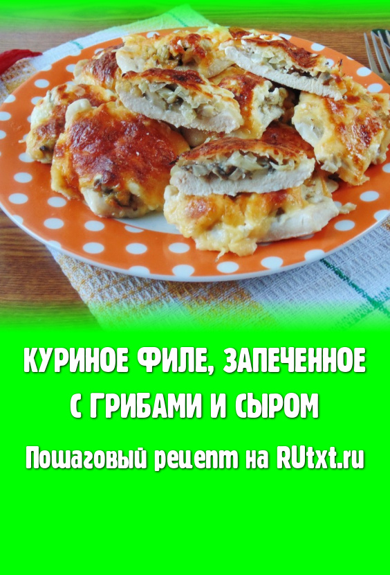 Нежное, сочное куриное филе, запеченное с грибами и сыром, готово. Выкладываем на тарелку и подаем на обед или ужин.