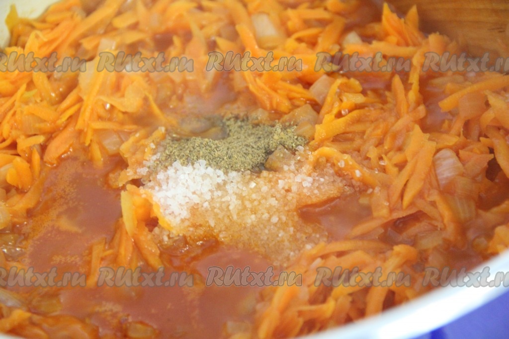Хорошо перемешать овощную массу. Добавить соль и перец.