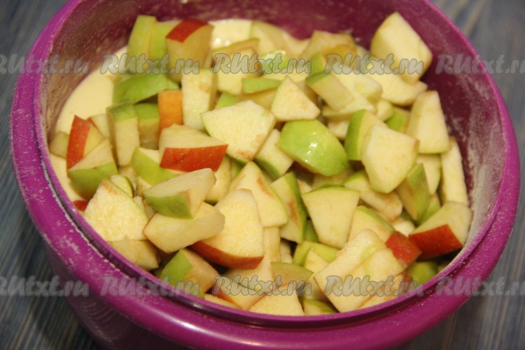 Затем добавить в тесто яблоки и тщательно перемешать лопаткой.