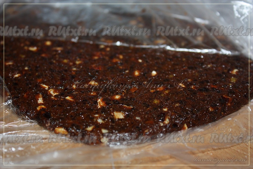 Утрамбовать полученную массу в любую форму, желательно форму застелить полиэтиленовым пакетом или пленкой. Вкусный, полезный десерт из чернослива и орехов готов. Хранить его нужно в холодильнике.