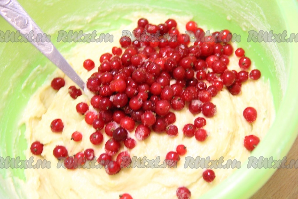 Всыпать ягоды в тесто и аккуратно перемешать.