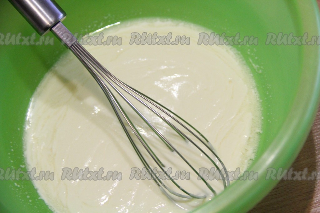 Перемешать венчиком до однородности смесь сметаны и масла.