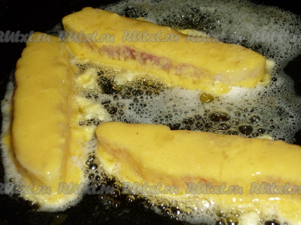 В сковороде разогреть растительное масло. Каждый кусочек филе пангасиуса обмакнуть в кляр и опустить в разогретое масло.