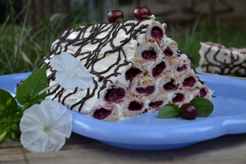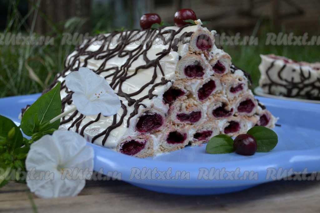 Безумно вкусный торт "Монастырская изба" с вишней со сметанным кремом готов.