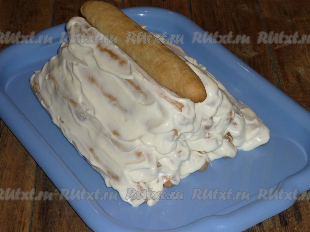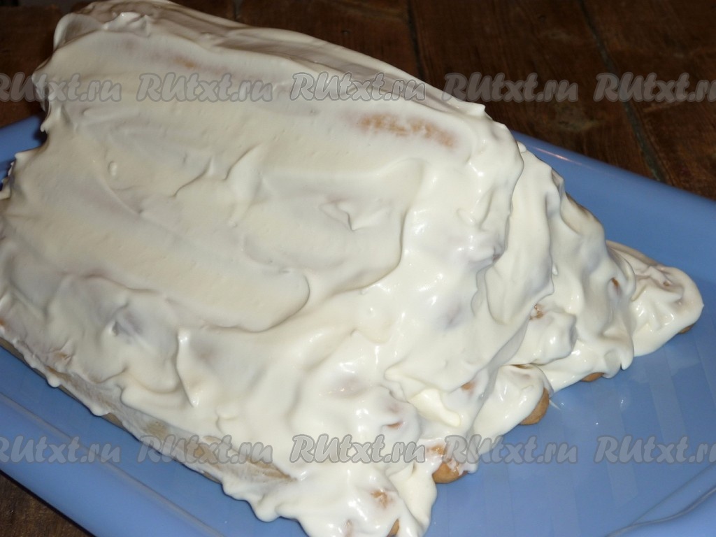 Продолжаем выкладывать трубочки, смазывая их кремом, формируя пирамиду.