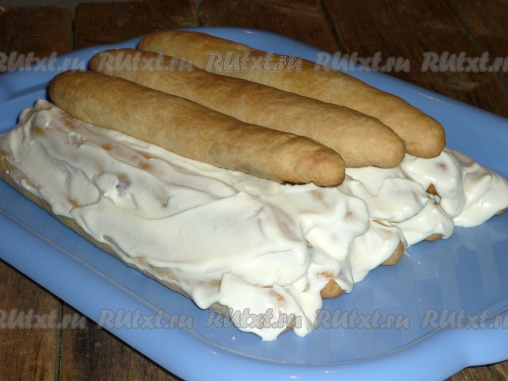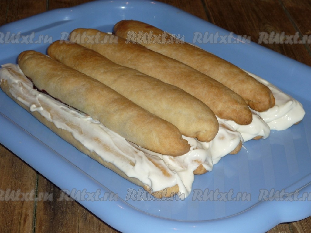 Сверху выложить четыре трубочки и тоже пропитать их кремом.