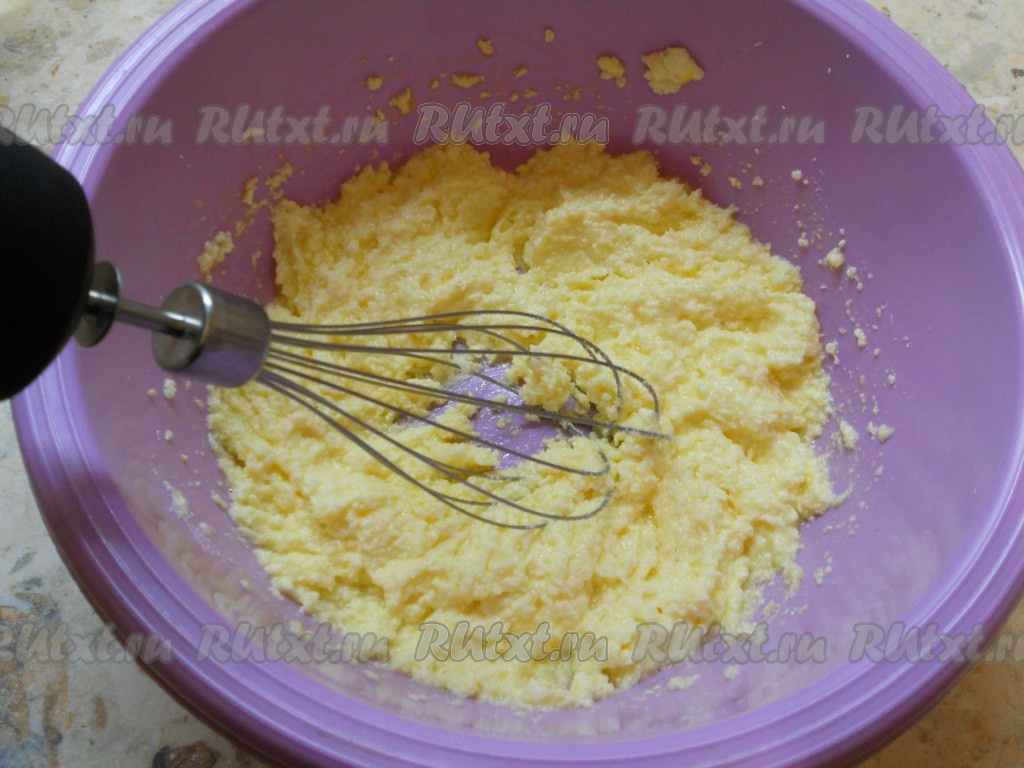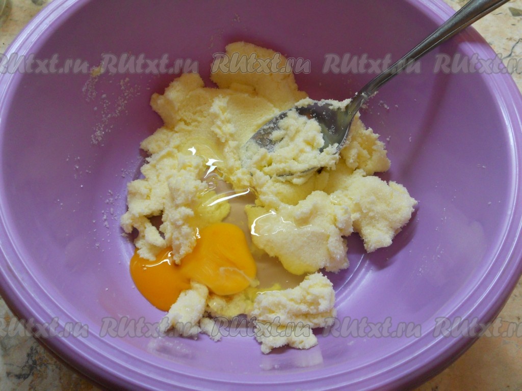 Размягченное сливочное масло или маргарин хорошо растереть с сахаром, добавить яйцо.