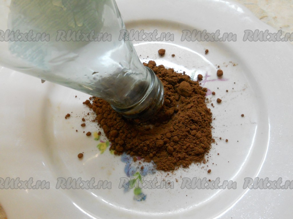 В мелкую тарелку насыпать какао-порошок. Горлышко стеклянной или пластиковой бутылки как бы "окунуть" в какао.