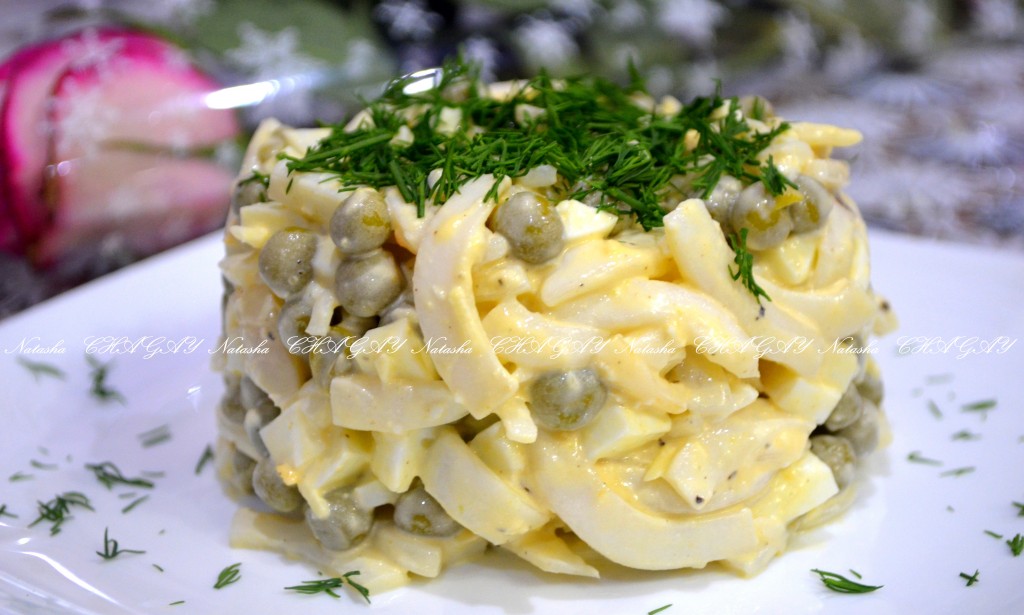 Предлагаю вам очередной рецепт салата с использованием моего любимого морепродукта - кальмара. Салат с кальмарами и зелёным горошком - вкусный, легкий и простой. Пробуйте!