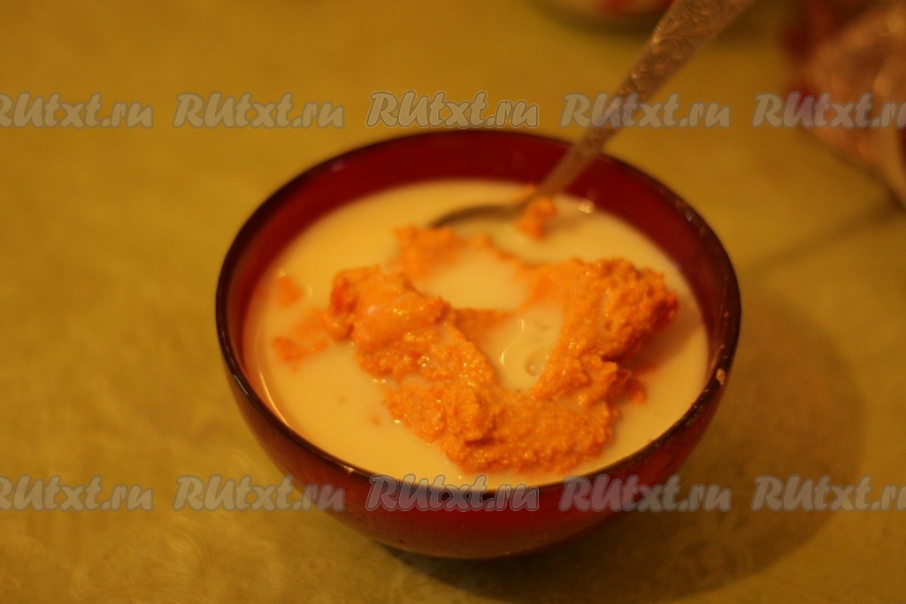Молоко с желатином нагреть, но не кипятить, желатин должен полностью раствориться. Добавить в тыквенную смесь и тщательно перемешать.