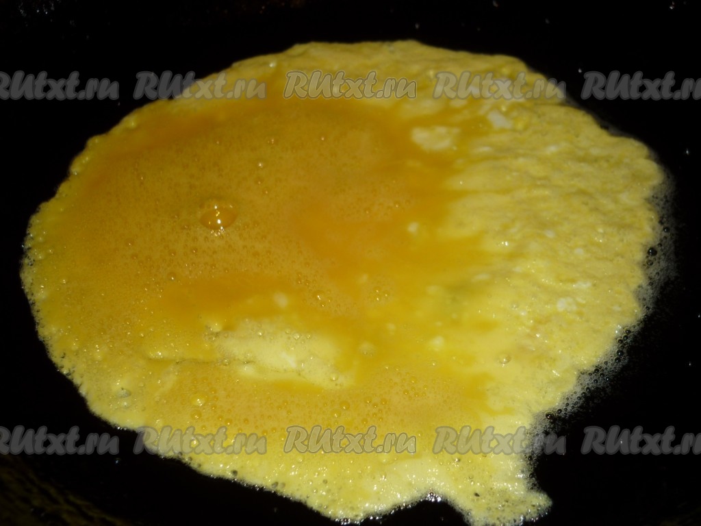 Пожарить яичный блинчик с двух сторон.