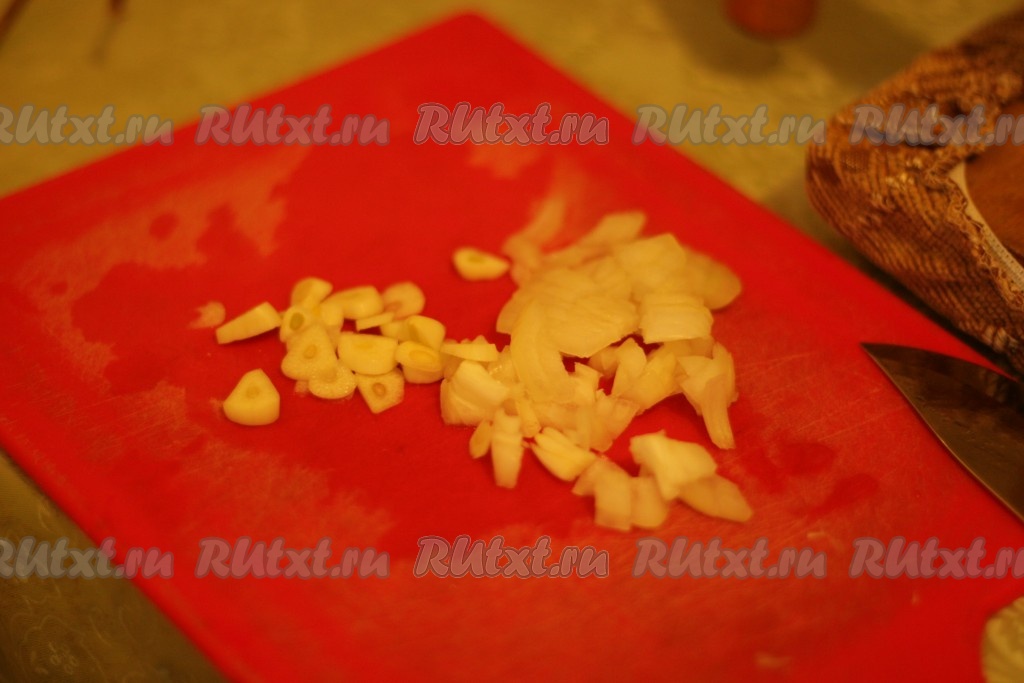 Лук и чеснок покрошить.