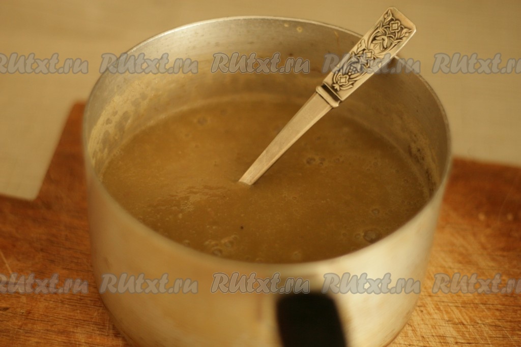 Отварить лук и чеснок вместе с чечевицей и морковкой в течение 30 минут. Пюрировать наш суп из чечевицы блендером.