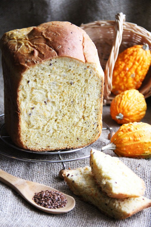 Хлебопечка - моя большая помощница! Я люблю экспериментировать с видами хлеба, вот открыла для себя простой рецепт очень вкусного и полезного тыквенного хлеба. В состав хлебушка входит мякоть тыквы, а ещё я добавила семена льна и получился изумительный вкус. Его можно и к супу подать, и использовать для приготовления бутерброда с колбаской или сыром.