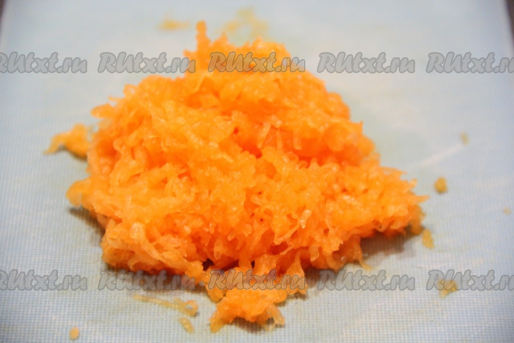 Натереть на мелкой тёрке мякоть тыквы, хорошо отжать сок. Для приготовления хлеба нам потребуется только мякоть.