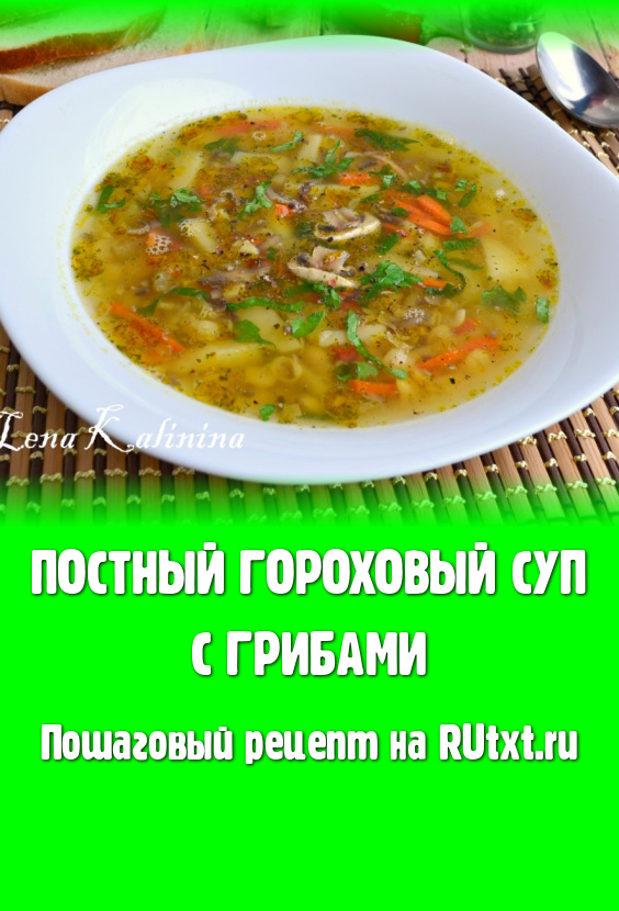 Различные супы с горохом пользуются большой популярностью. Я предлагаю вам сварить постный гороховый суп с грибами. Супчик получается очень вкусным, насыщенным и сытным, но в тоже время лёгким. Обязательно порадуйте себя и своих близких отличным первым блюдом!