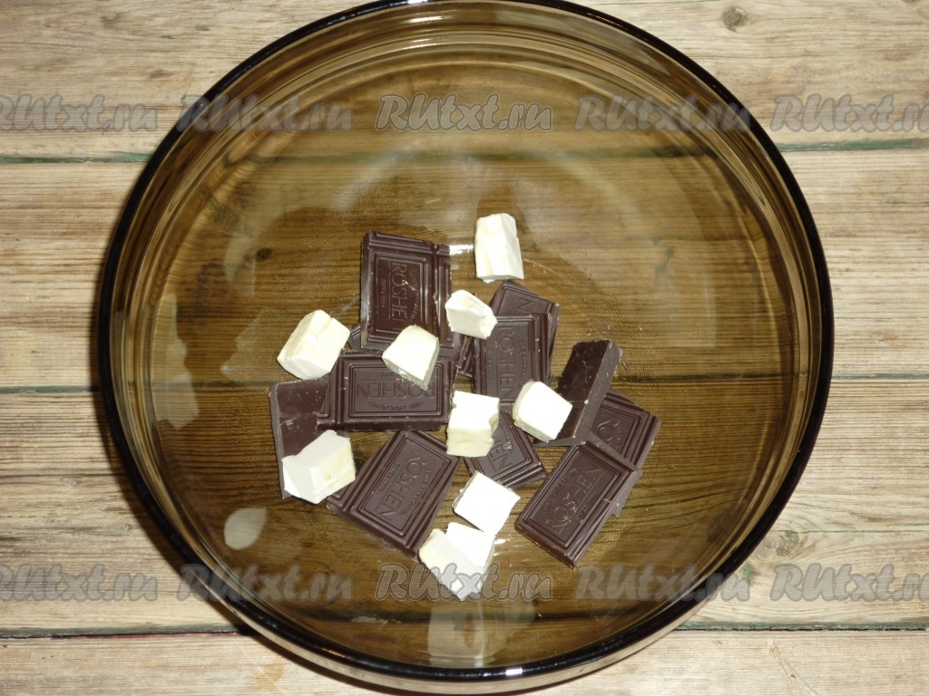 Шоколад поломать на дольки, сливочное масло нарезать на небольшие кубики.