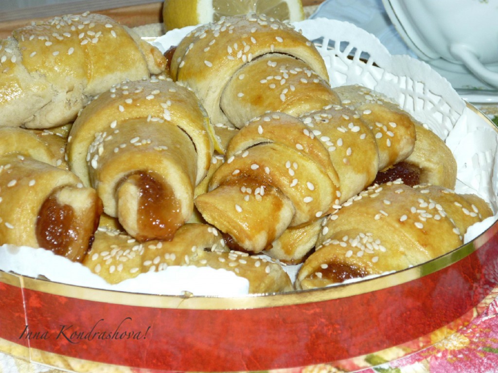 Вкусные слоеные круассаны с джемом готовы.