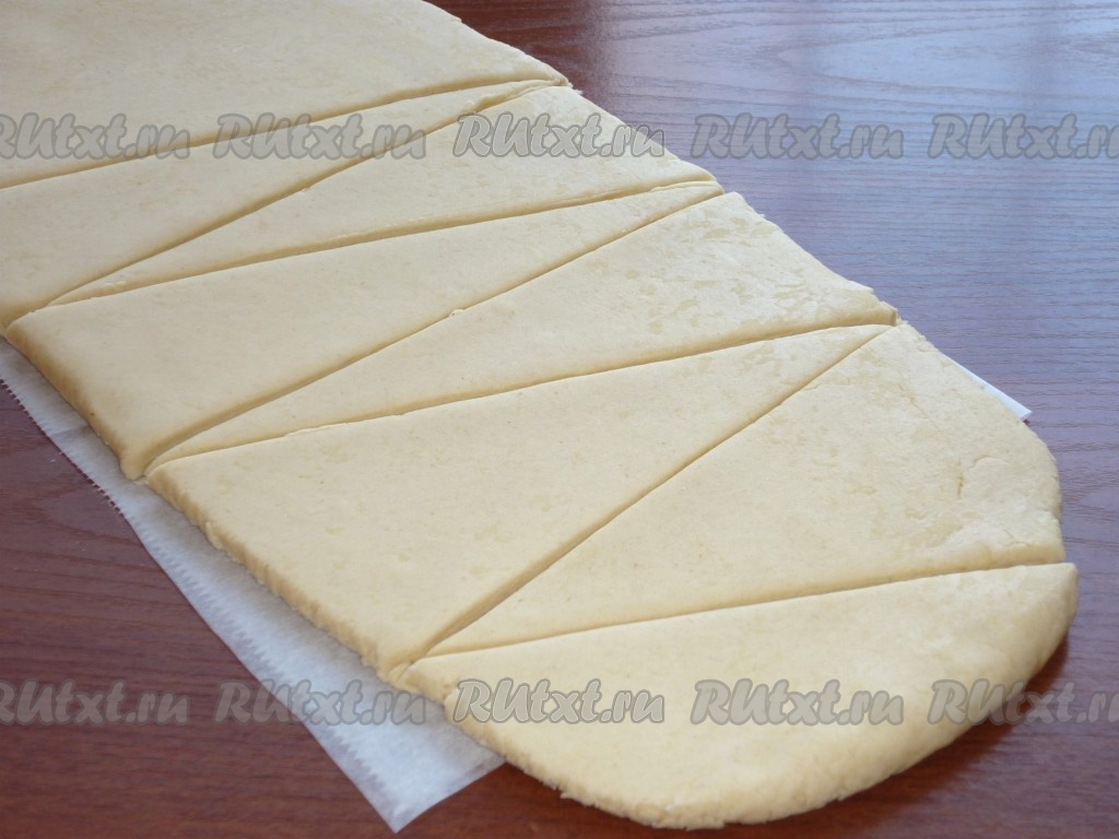 Затем разрезать пласт теста на треугольники.