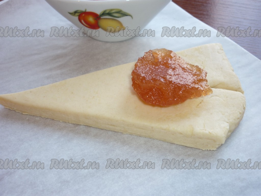 На край каждого треугольника выложить по половине чайной ложки яблочного джема