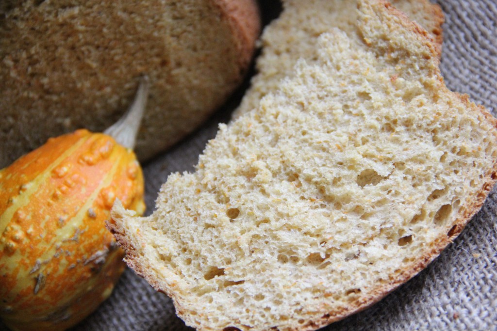 Вот такой красивый, вкусный, с тонкой корочкой получается в разрезе тыквенно-ржаной хлеб. Такой хлебушек станет прекрасным дополнением к различным блюдам!