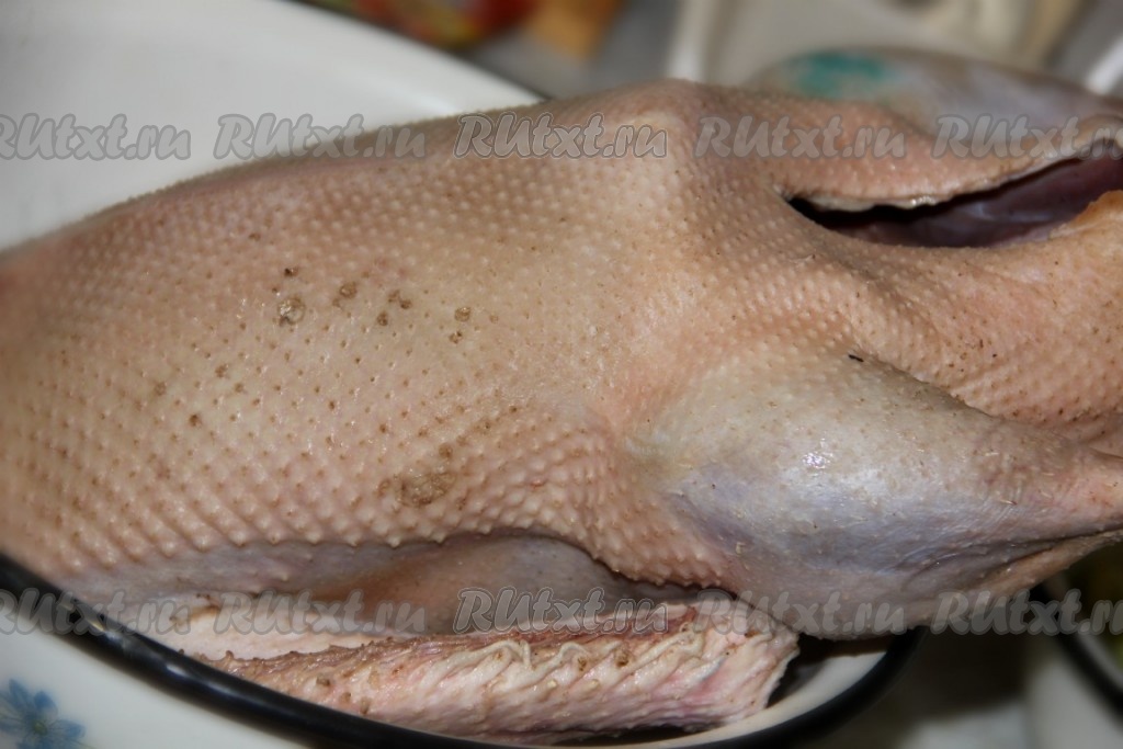 Утку подготавливаем к приготовлению: очищаем, удаляем все внутренности, тщательно промываем под проточной водой и обсушиваем.