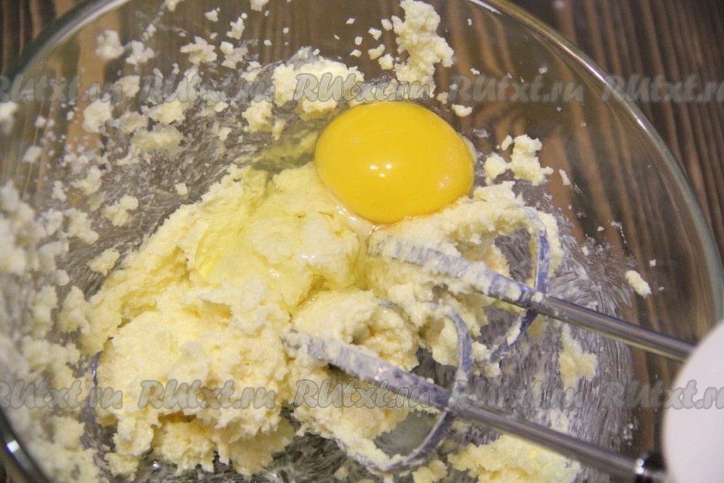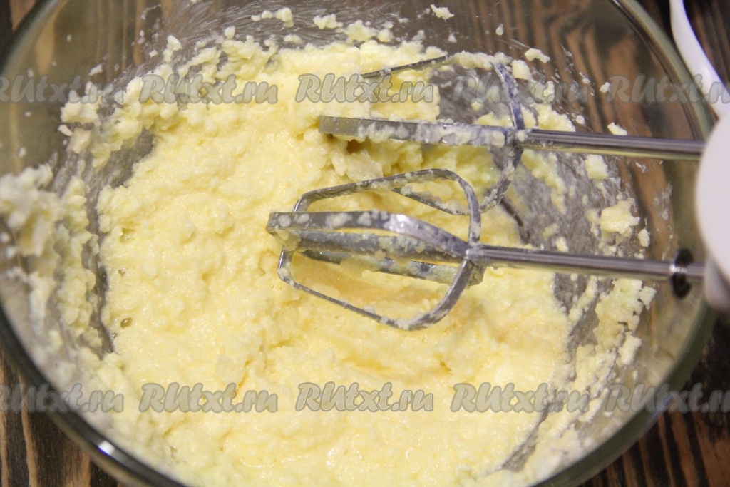 С помощью миксера взбить масло с сахаром до однородного пышного состояния.