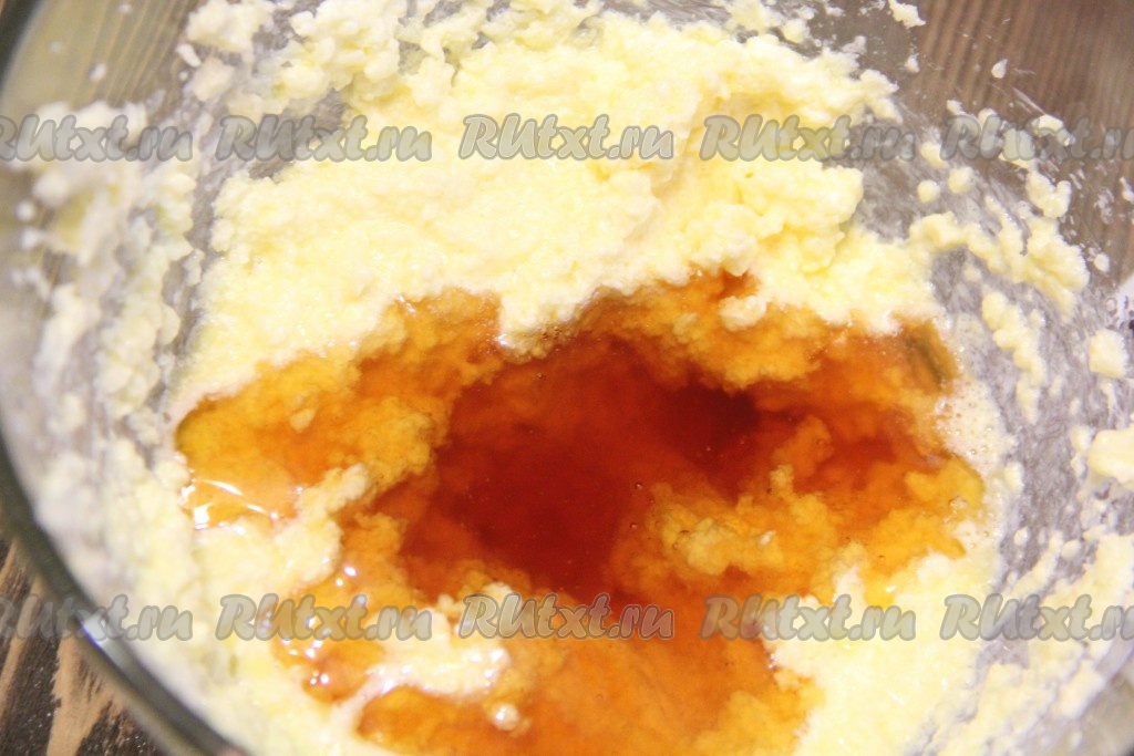 В отдельную миску всыпать сахар и добавить мягкое масло.