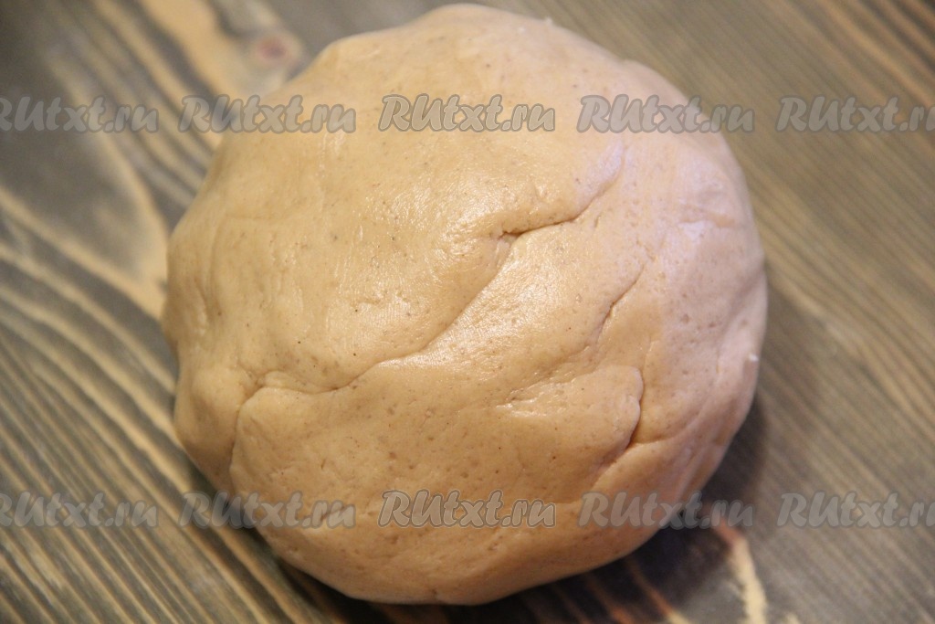 Слегка припылить тесто мукой и хорошо его вымесить до гладкого и ровного состояния. Тесто не должно липнуть к рукам.