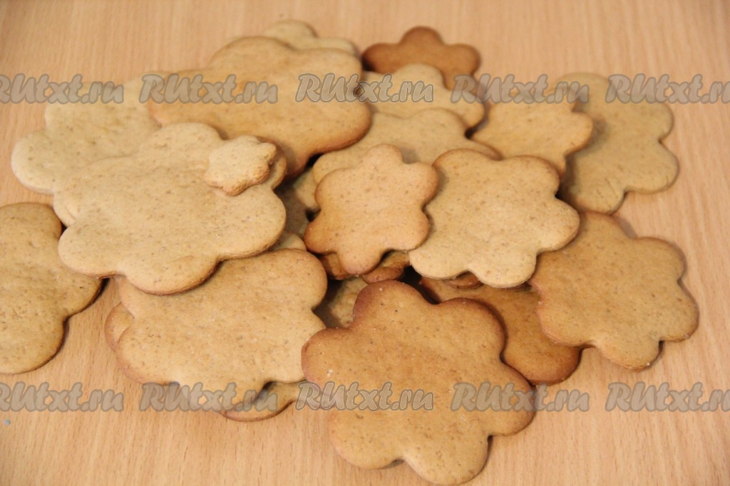 Противень с печеньем поставить в разогретую духовку и выпекать при 180 градусах примерно 7 минут. Ориентируйтесь по своей духовке. Печенье должно стать золотистого цвета. У меня печеньки получились разные по цвету, но это не повлияло на вкус, а для формирования имбирных ёлочек даже оказалось очень красиво. Готовое печенье переложить на ровную поверхность и хорошо остудить.