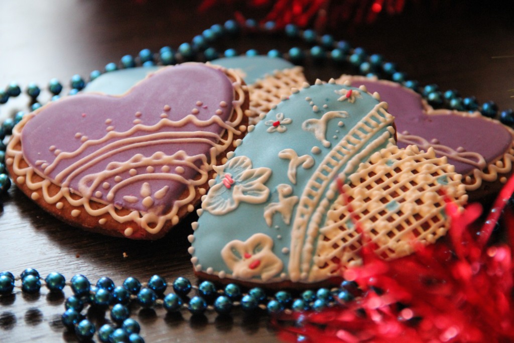 Готовые пряники разукрасить по своему желанию или просто присыпать пудрой. Я предпочитаю украшение глазурью. Для этого взбиваю яичный белок с сахарной пудрой и добавляю пару капелек лимонного сока. С помощью кондитерского мешка я разрисовываю пряники на свой вкус. Первым рисую контур и оставляю застывать. Затем разрисовываю пряники внутри основным цветом и, если требуется, после застывания делаю узор поверх основного цвета. Для контура и рисунка использую глазурь, указанную в рецепте. Для основного цвета и заполнения пустых мест в глазурь, указанную в рецепте, добавляю 1 чайную ложку воды, чтобы наша масса стала более жидкой и равномерно заполняла нужное пространство. Вот такие красивые, вкусные рождественские пряники можно приготовить в домашних условиях.