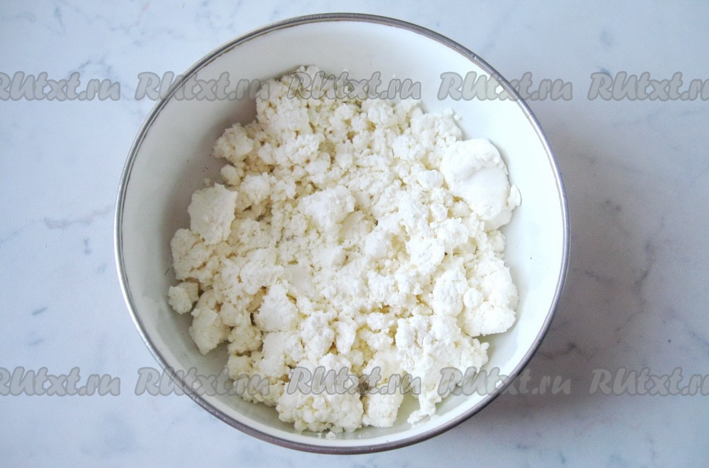 В миску выложить творог.