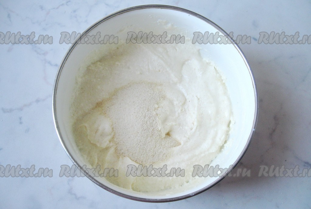 В полученную массу всыпать манную крупу.
