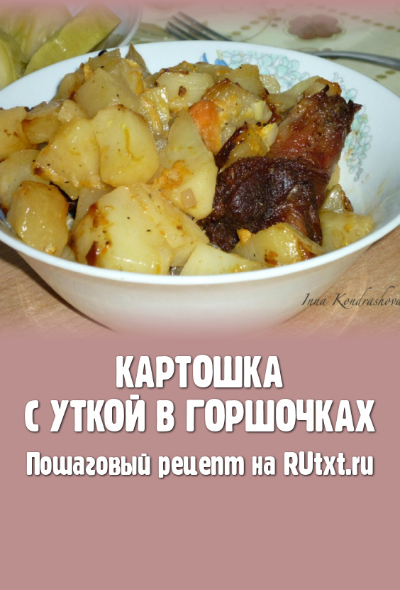 Рецепт приготовления картошки с уткой в горшочках - очень простой, но на вкус это не влияет. Картошечка, пропитываясь мясным соком, получается мягкой и очень вкусной, а кусочки утки просто тают во рту.