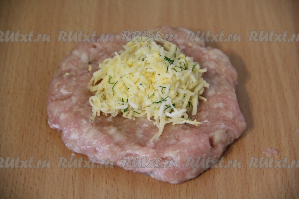 Завернуть начинку в фарш и сформировать котлету.