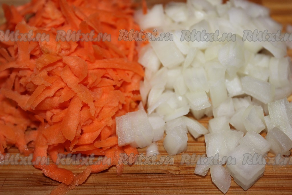 Лук очистить, мелко порубить. Морковь почистить и натереть на средней терке.