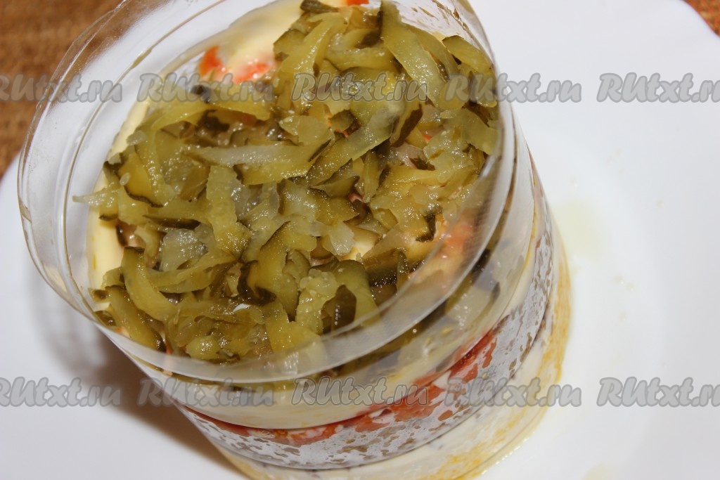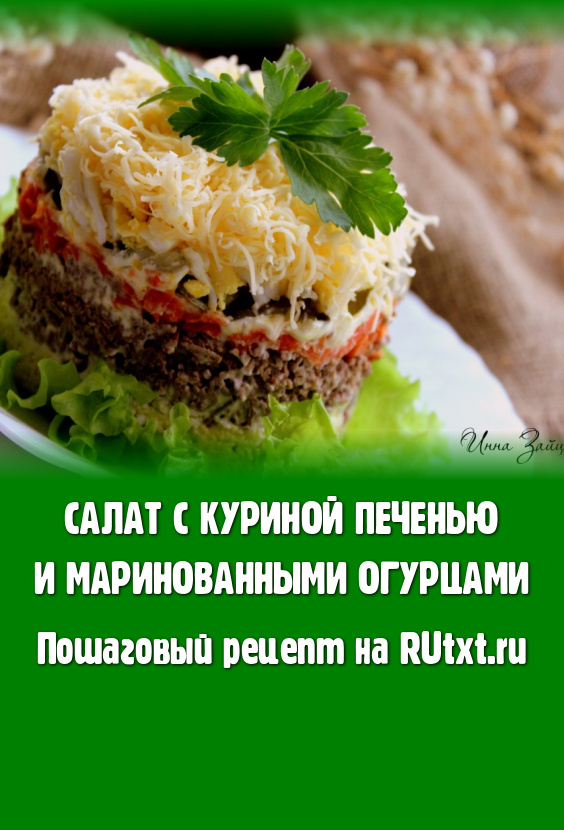 Салат с куриной печенью и маринованными огурцами