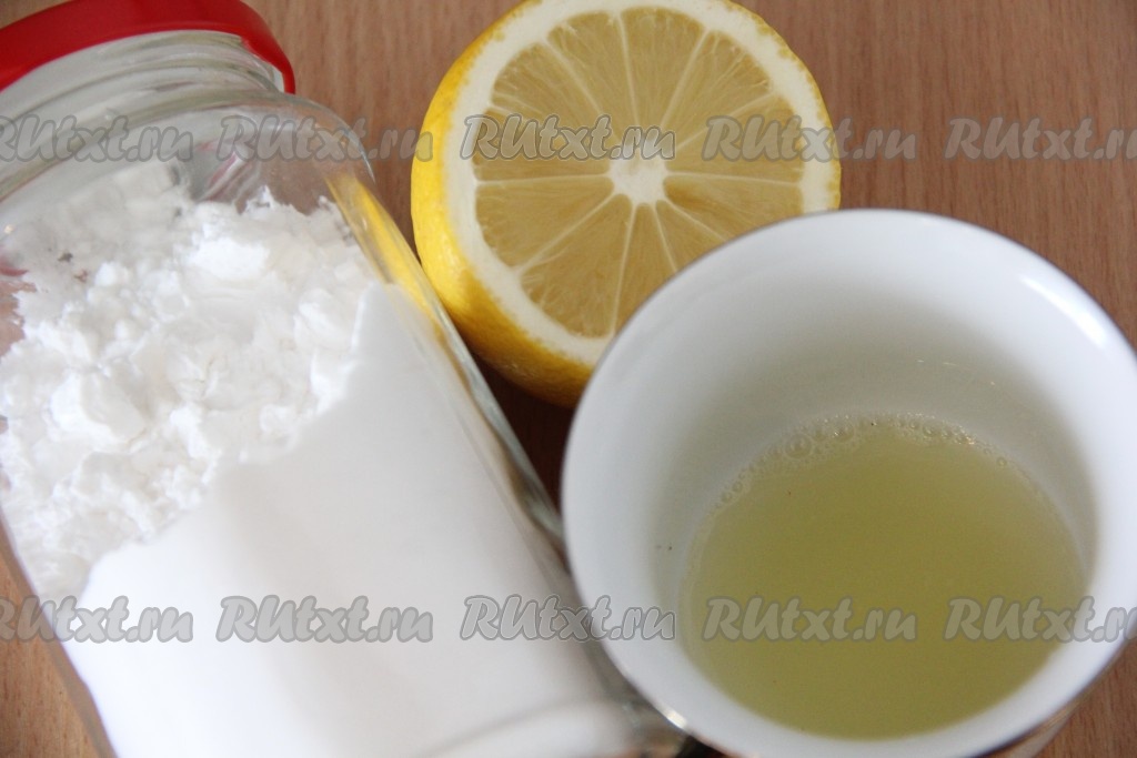 Для приготовления глазури нужно в небольшую пиалку выдавить чайную ложку лимонного сока, а затем всыпать сахарную пудру. Пудру добавляем постепенно, небольшими порциями, всё время тщательно перемешивая. Глазурь станет белая и вязкая.