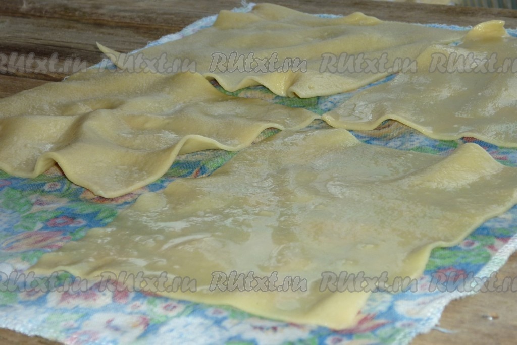 Мокрую заготовку разложить на полотенце и оставить на пару минут, чтобы она подсохла. Аналогично подготовить все 12 частей теста.