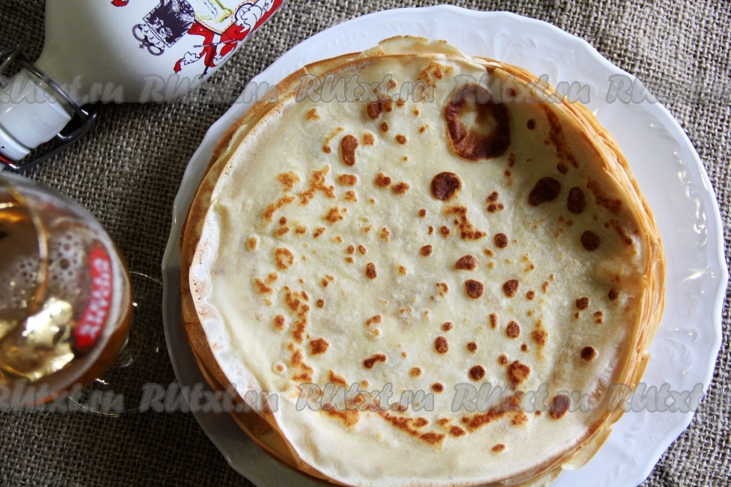 Вот такую румяную горку аппетитных, тонких блинов, замешанных на пиве, я испекла.