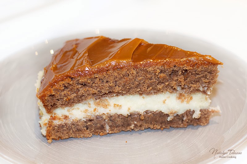 Лена, помнится этот чудесный торт! Я готовила его один раз, но у меня родные часто рецепт спрашивали - очень им понравился 🙂 В своем варианте я добавляла в кремовую прослойку манную крупу, а верх торта смазывала "варенкой". За основу брала шоколадный бисквит. Думаю, наши с вами торты по вкусу получились похожими 🙂 У вас только более классический вариант с шоколадной глазурью.