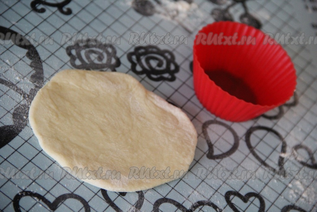Я формировала пирожки в силиконовых формах. Раскатать тесто в круг (не тонко).